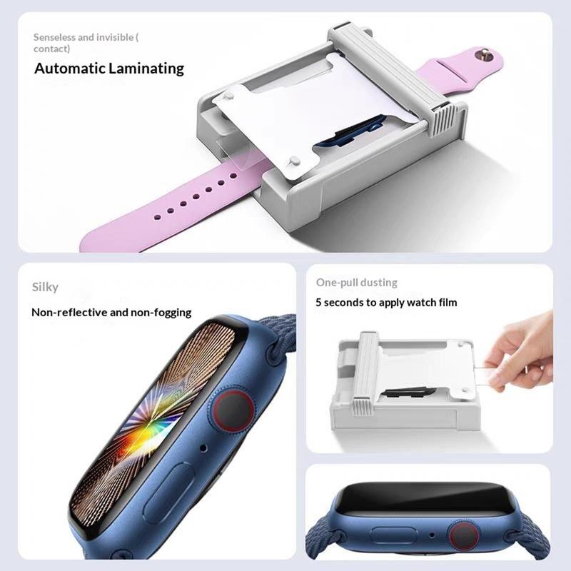 Protetor de ecrã com kit de instalação sem poeira para Apple Watch Series 9/8/7 - Película de PET macia com cobertura total