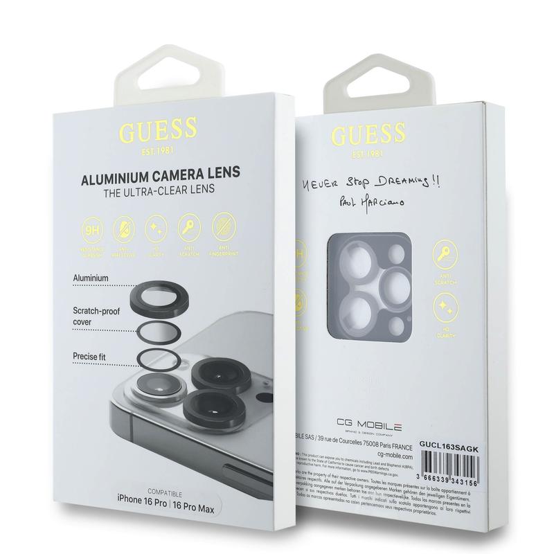Protetor da lente da câmara em alumínio da Guess para iPhone 16 Pro, iPhone 16 Pro Max
