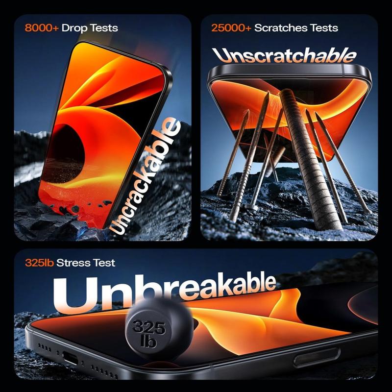 - Estrutura de proteção de 4 camadas: resistente a quedas, arranhões, impactos e explosões
