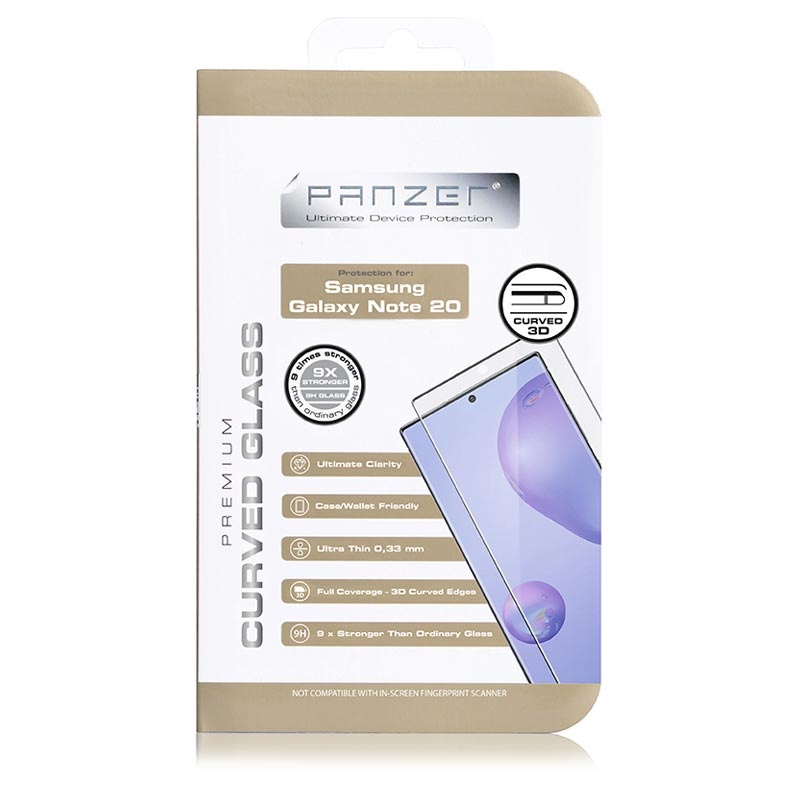 Protetor de Ecrã de Vidro Temperado Curvado Panzer Premium para Samsung Galaxy Note 20 - 9H, 0.33mm