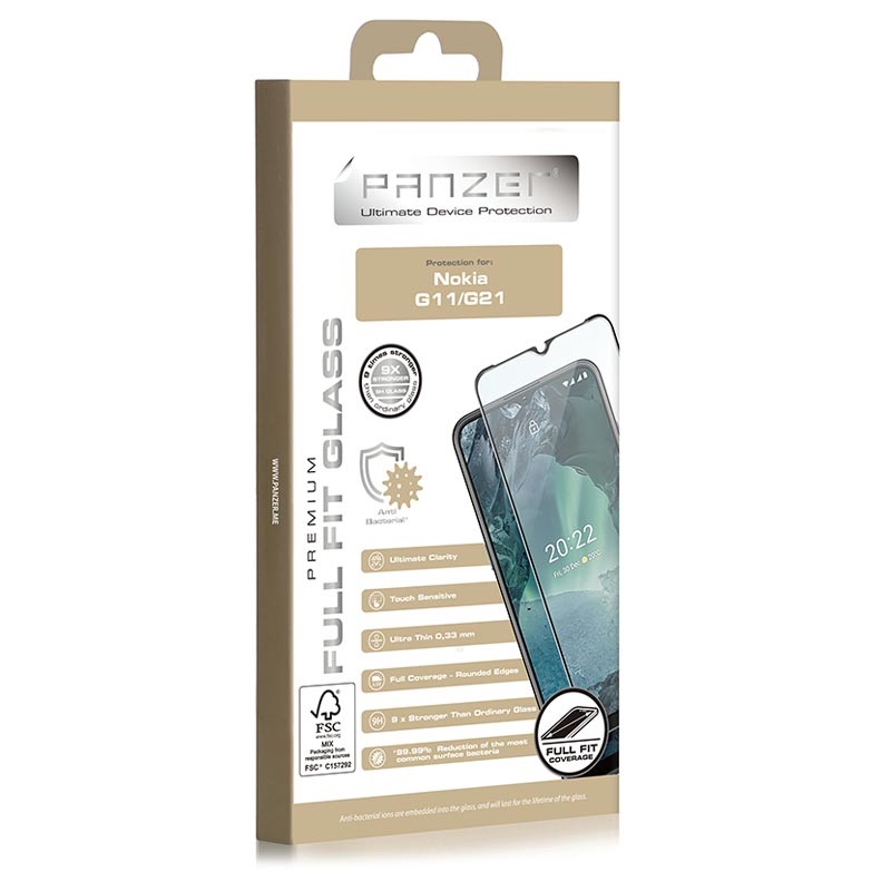 Preserve o ecrã do seu Nokia G11, Nokia G21, sem riscos, cobrindo-o com o protetor de ecrã Panzer Premium Full-Fit.