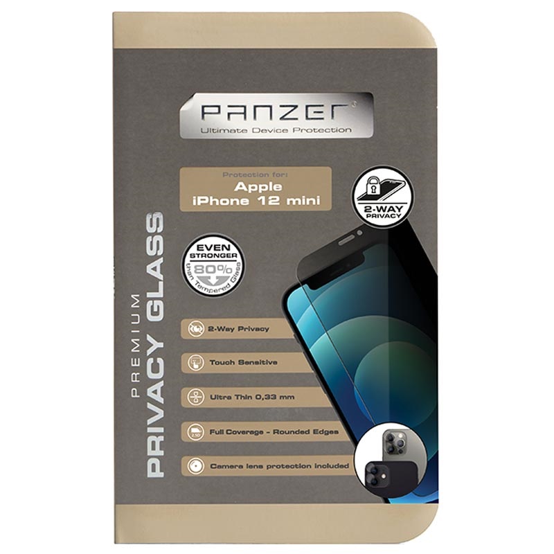 Protetor em Ecrã de Vidro Temperado Panzer Premium Full-Fit Privacy para iPhone 12 Mini - 9H, 0,6mm