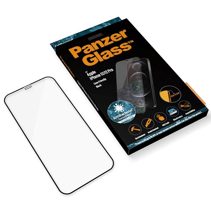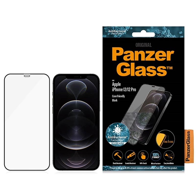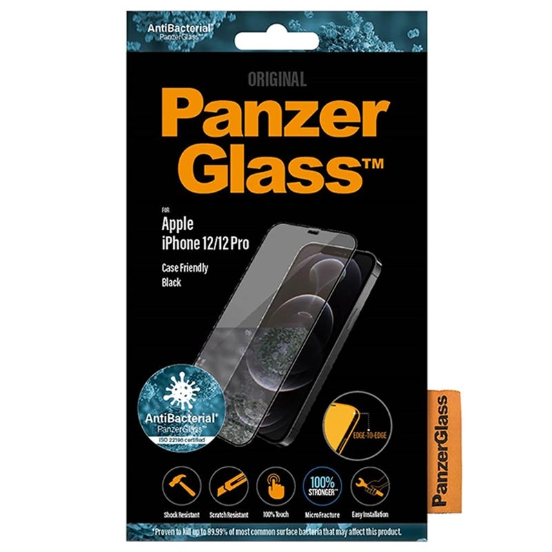 Protetor de Ecrã em Vidro Temperado PanzerGlass Case Friendly AntiBacterial para iPhone 12, iPhone 12 Pro