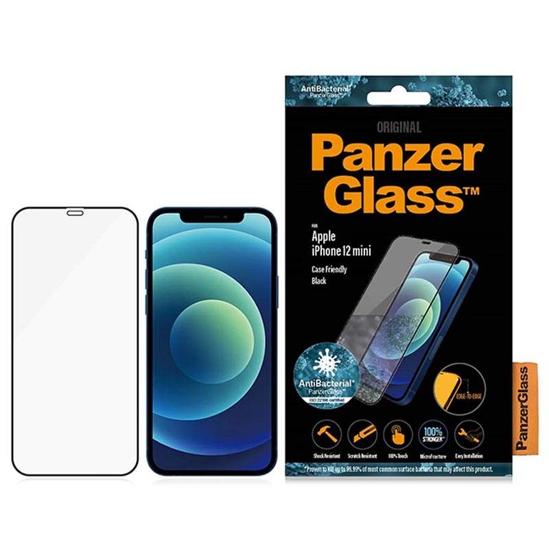 Protetor de Ecrã em Vidro Temperado PanzerGlass Case Friendly AntiBacterial para iPhone 12 Mini