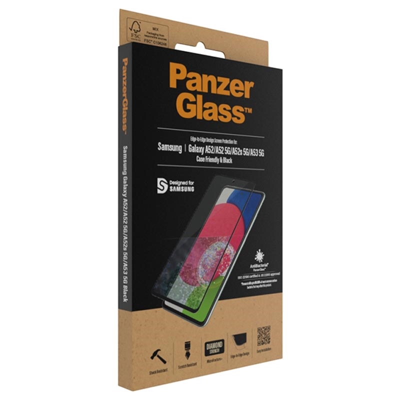Protetor de Ecrã em Vidro Temperado PanzerGlass Case Friendly AntiBacterial para Samsung Galaxy A52 5G, Galaxy A52 4G, Galaxy A52s 5G, Galaxy A53 5G