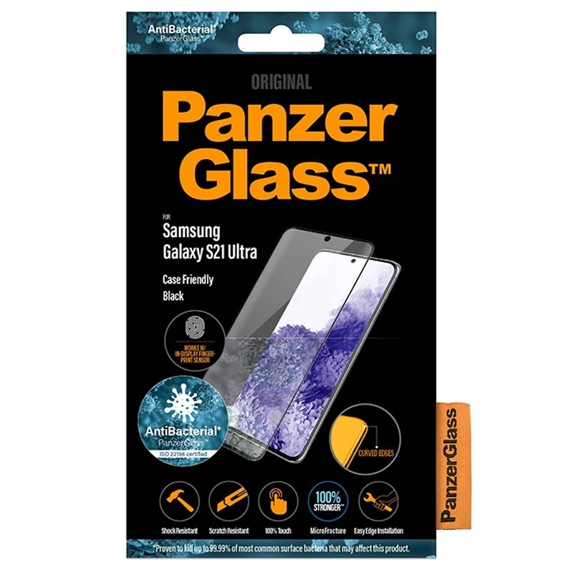 Protetor Ecrã em Vidro Temperado PanzerGlass Case Friendly AntiBacterial para Samsung Galaxy S21 Ultra 5G