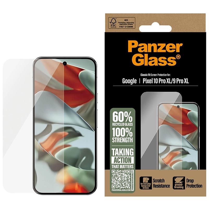 O protetor de tela PanzerGlass Classic Fit com resistência em platina mantém a tela do seu Google Pixel 10 Pro XL, Pixel 9 Pro XL em perfeitas condições, protegida contra arranhões e rachaduras. Este protetor de tela de vidro temperado altamente transparente preserva perfeitamente a sensibilidade da tela sensível ao toque e a qualidade da imagem. Graças ao revestimento oleofóbico e antibacteriano, a tela do seu Google Pixel 10 Pro XL, Pixel 9 Pro XL estará livre de manchas, impressões digitais e bactérias.