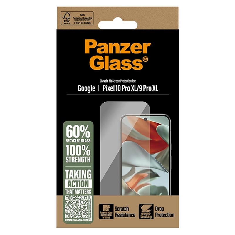 Protetor de Ecrã em Vidro Temperado PanzerGlass Classic Fit AntiBacterial para Google Pixel 10 Pro XL, Pixel 9 Pro XL