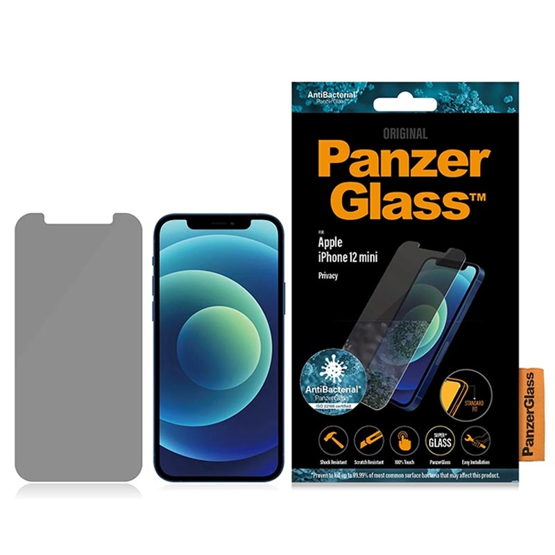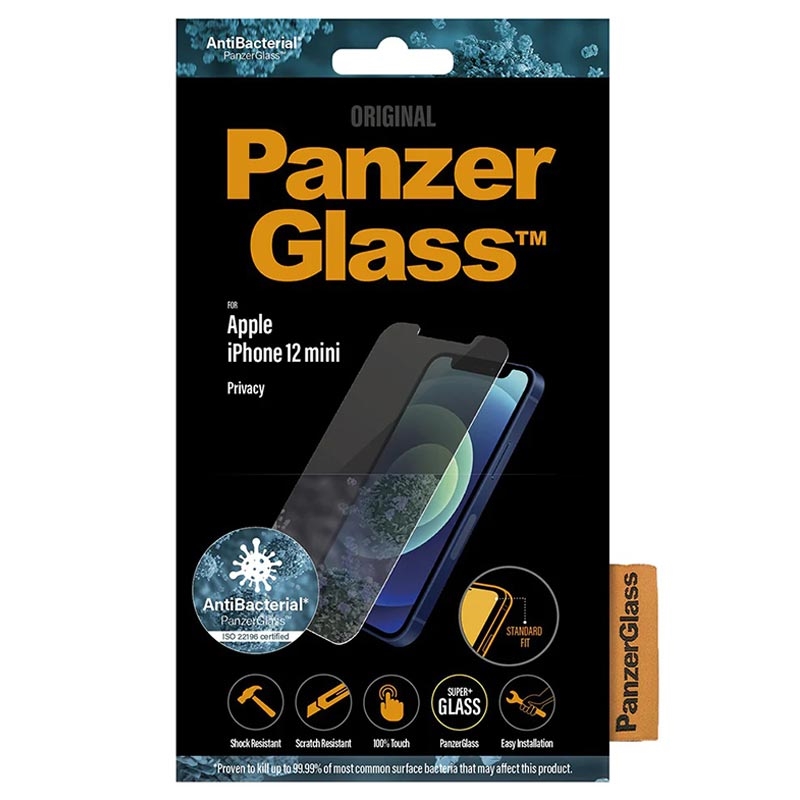 Protetor de Ecrã em Vidro Temperado PanzerGlass Standard Fit Privacy AntiBacterial para iPhone 12 Mini