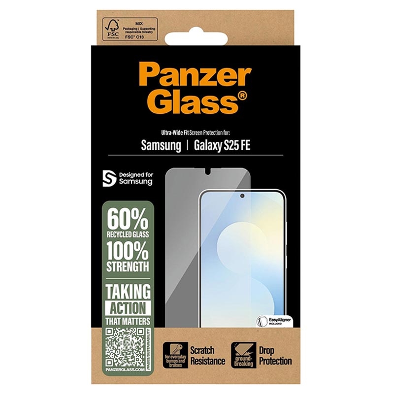 - Protetor de tela de vidro temperado Ultra-Wide Fit para Samsung Galaxy S25 FE da PanzerGlass