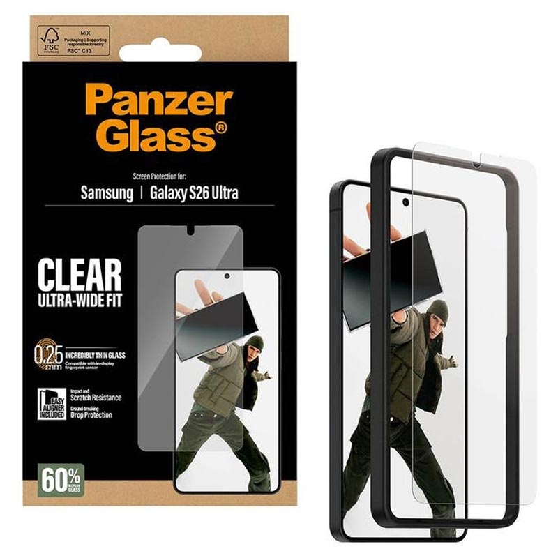 - Protetor de tela de vidro temperado Ultra-Wide Fit para Samsung Galaxy S26 Ultra da PanzerGlass