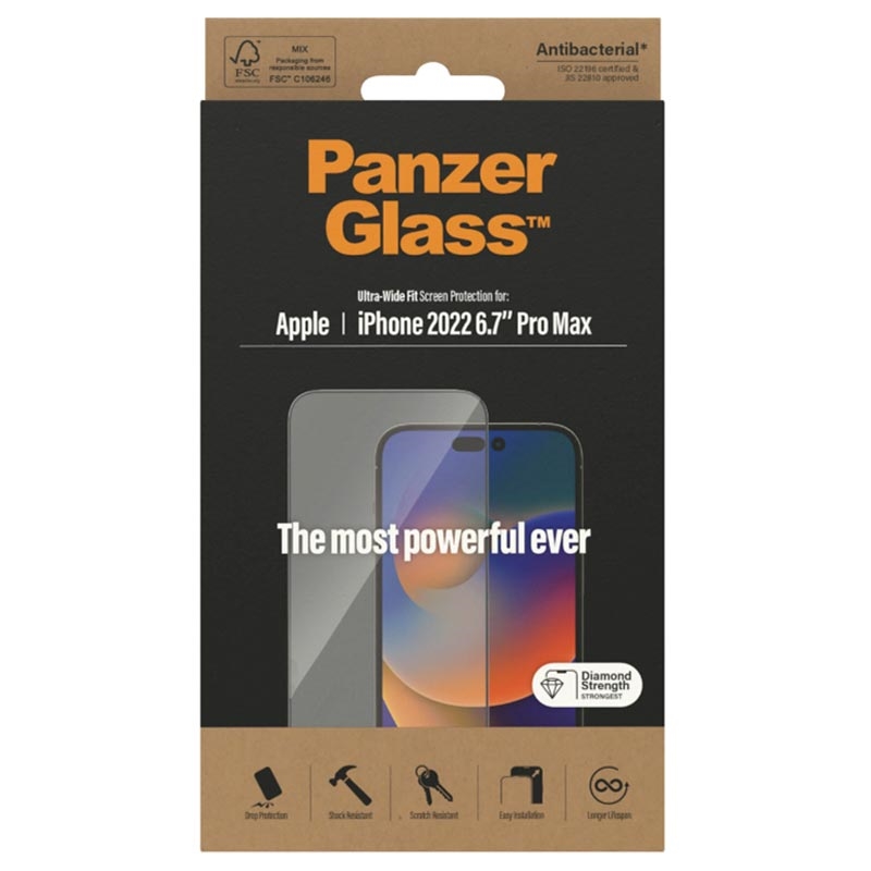 Protetor de Ecrã em Vidro Temperado PanzerGlass Ultra-Wide Fit AntiBacterial para iPhone 14 Pro Max
