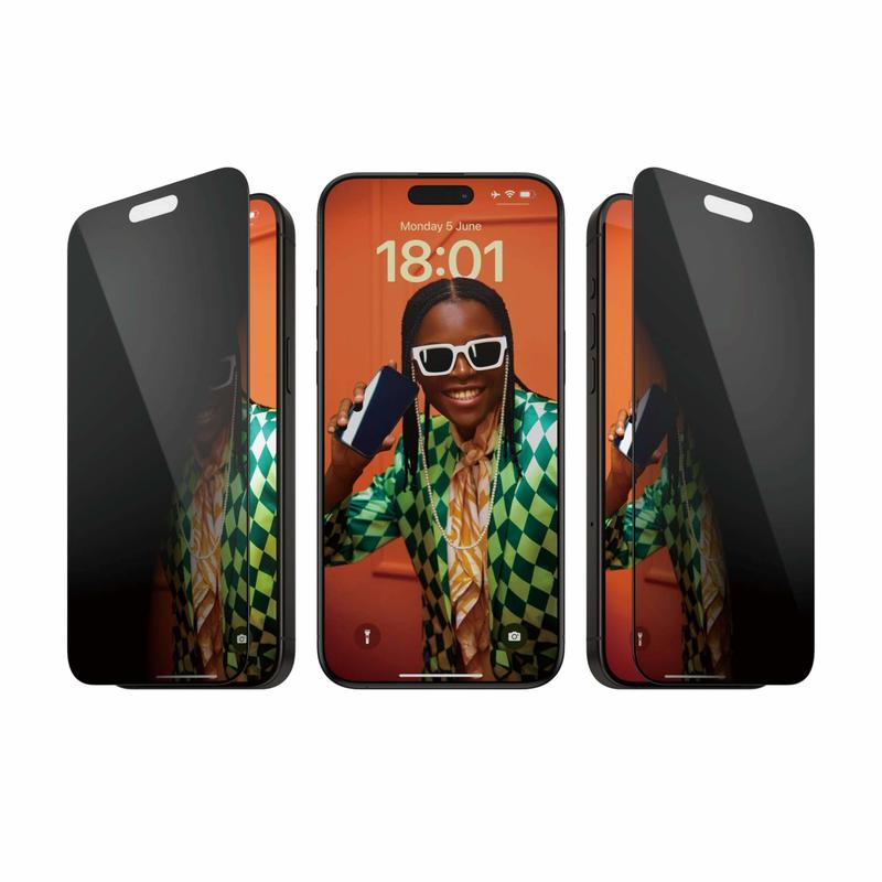 - Vidro temperado Ultra-Wide Fit Privacy para iPhone 15 Pro Max