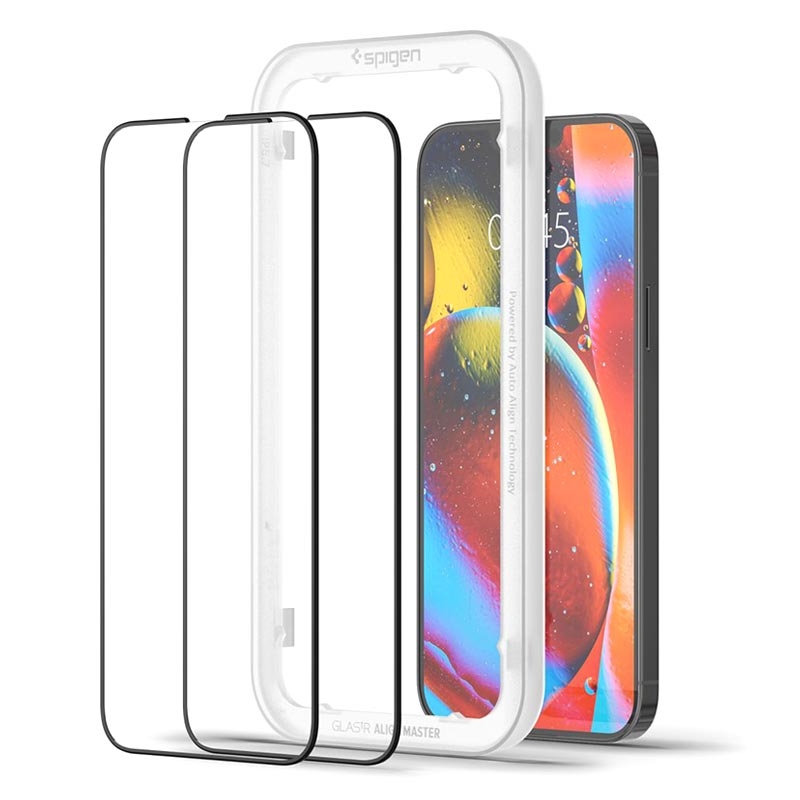 Protetor de Ecrã em Vidro Temperado Spigen Glas.tR AlignMaster Full Cover para iPhone 13, iPhone 13 Pro, and iPhone 14, iPhone 16e - 2 Unidades