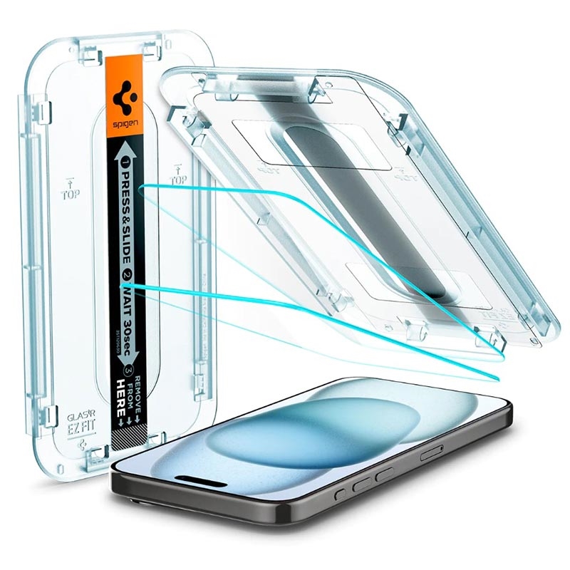 Protetor de Ecrã Spigen Glas.tR Ez Fit para iPhone 15, iPhone 16 - 2 Unidades