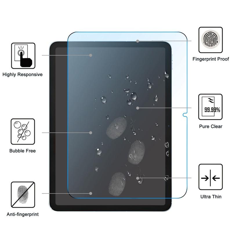 O protetor de ecrã de vidro temperado ultra-fino com anti-raios azuis protege o ecrã do seu iPad (2022), iPad (2025). Também protege os seus olhos dos raios azuis nocivos.