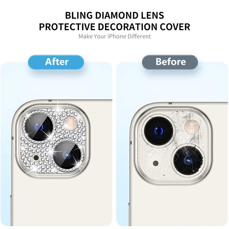 Este protetor de câmara é feito de vidro temperado premium com dureza 9H, colocada sob o anel em robusta liga de alumínio, decorado com strass brilhante. É fabricado precisamente para encaixar perfeitamente nas lentes da câmara do seu iPhone 15, iPhone 15 Plus, com alta transparência, para que não afete a qualidade das imagens e vídeos captados.
