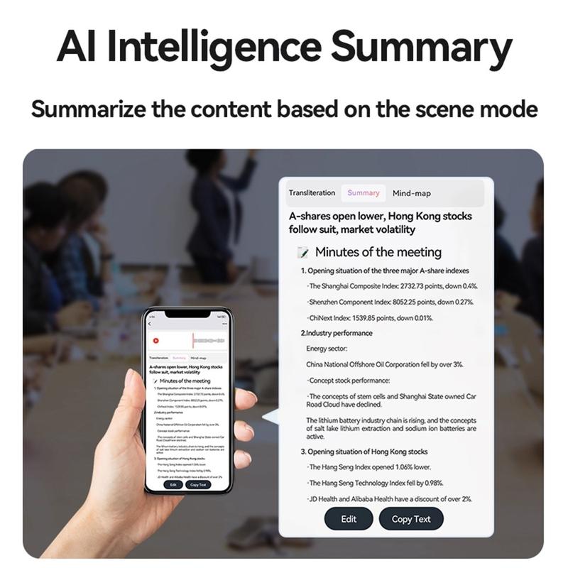 - Transcrição com tecnologia de IA: Conecte-se ao AIREC-APP via Bluetooth 5.3 para transcrição e tradução em tempo real em 188 idiomas, com tecnologia ChatGPT.