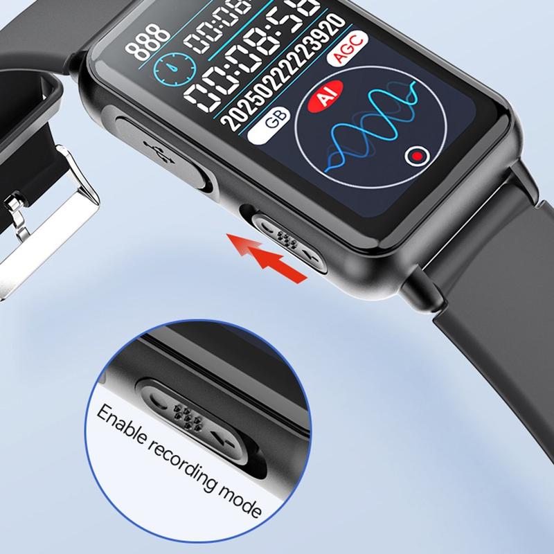 - Este design de gravador-relógio combina moda com funcionalidade, tornando-o numa das ferramentas de áudio mais discretas disponíveis.