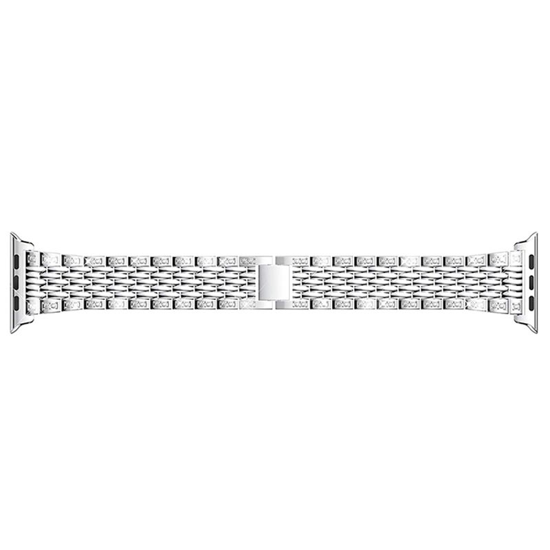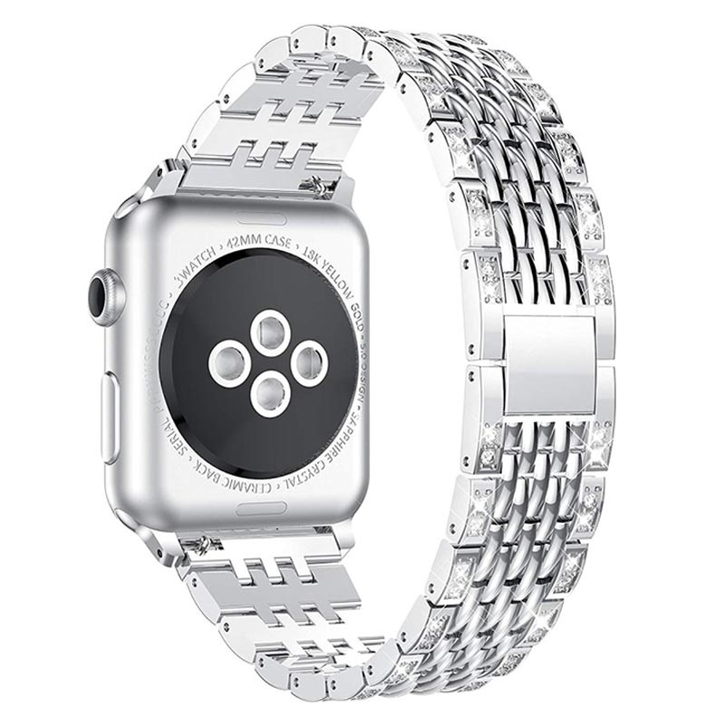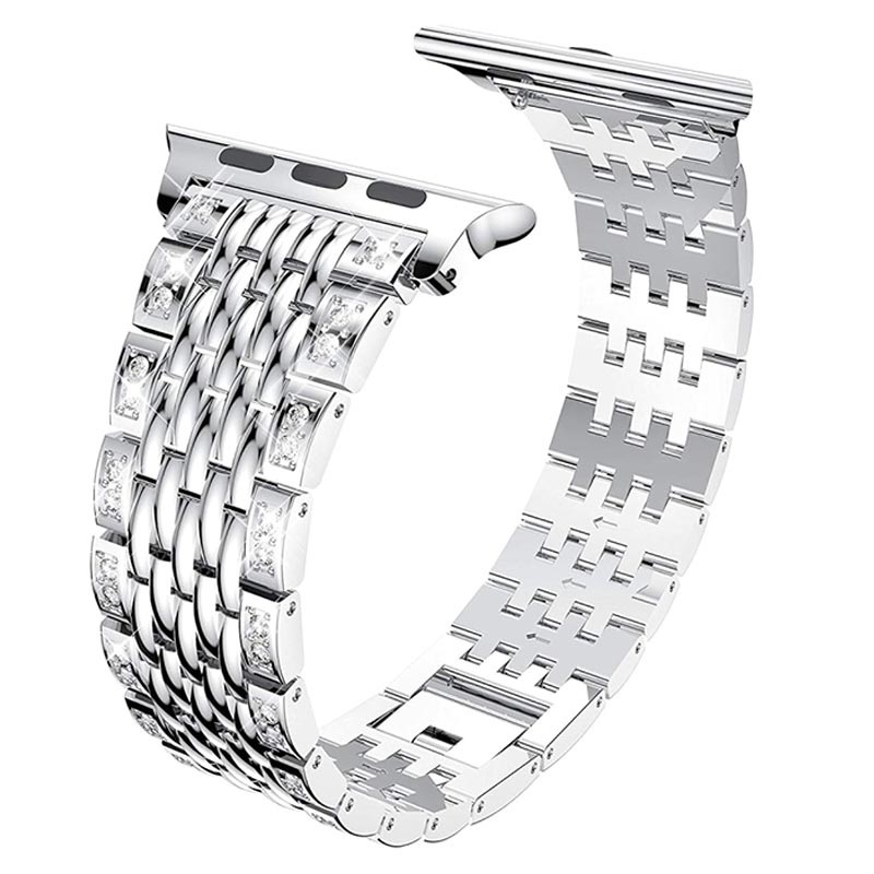 Esta pulseira para Apple Watch com design exclusivo é feita de aço inoxidável e está decorada com pedras brilhantes. Ajuste o comprimento para a colocar bem no seu pulso. A pulseira de aço inoxidável Glam para Apple Watch Series Ultra 3/2/Ultra/11/10/9/8/SE 3/(2022)/7/SE/6/5/4/3/2/1 possui um fecho de metal seguro.