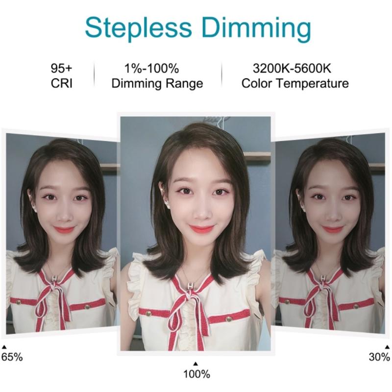 Modo de iluminação de 3 cores com brilho ajustável à sua escolha, pode ajustar a cor e o brilho muito facilmente, o brilho perfeito pode ser alcançado sem instalar filtros coloridos extra. Três cores de luz natural suave iluminam a sua beleza em diferentes ocasiões