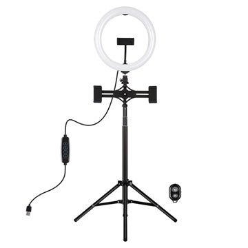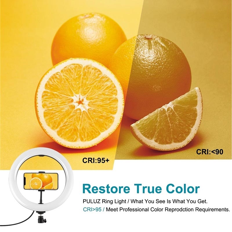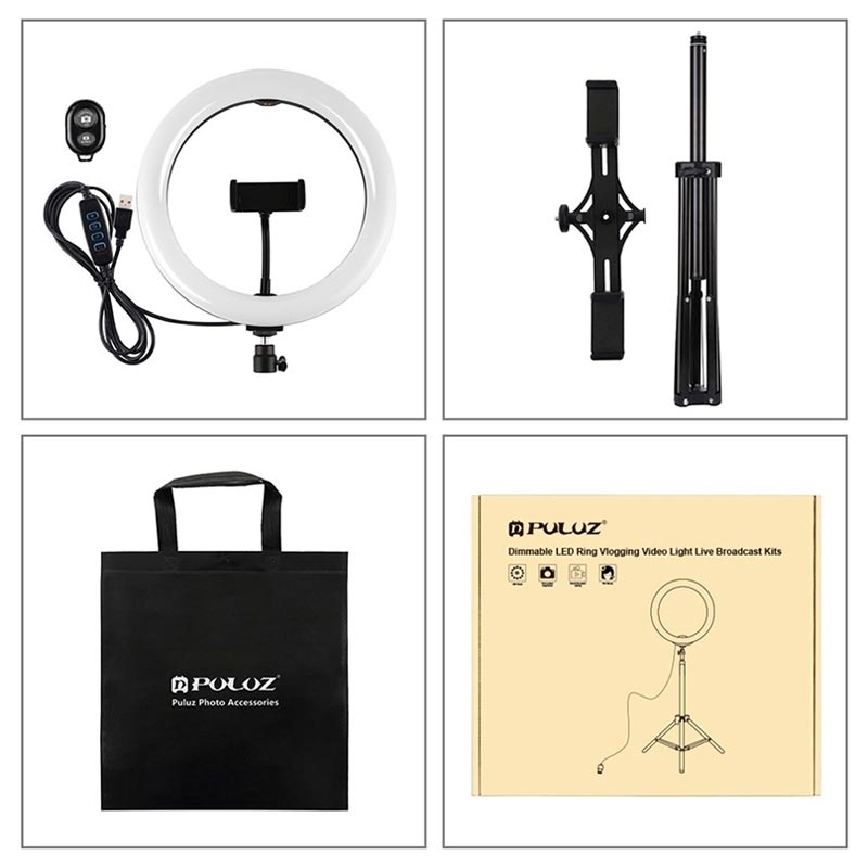 PULUZ PKT3066B 10.2" LED Selfie Ring Light Celular Braçadeira Tripé Suporte para Gravação de Vídeo do YouTube Blogger