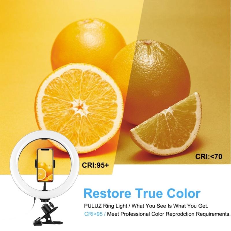 Inclui um grampo de montagem que abre o tamanho até 2,4 cm, o que permite que esta luz anelar seja montada na secretária, portátil, cadeira, cama, mesa de conferências e até no monitor do PC