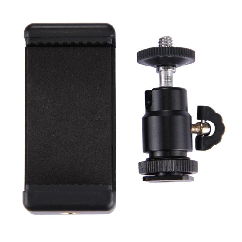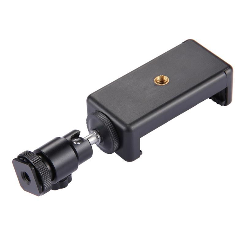 Puluz PU214 1/4" Cabeça de tripé de sapata quente + braçadeira de suporte de tripé para smartphones (largura da braçadeira: 6-7,6 cm)