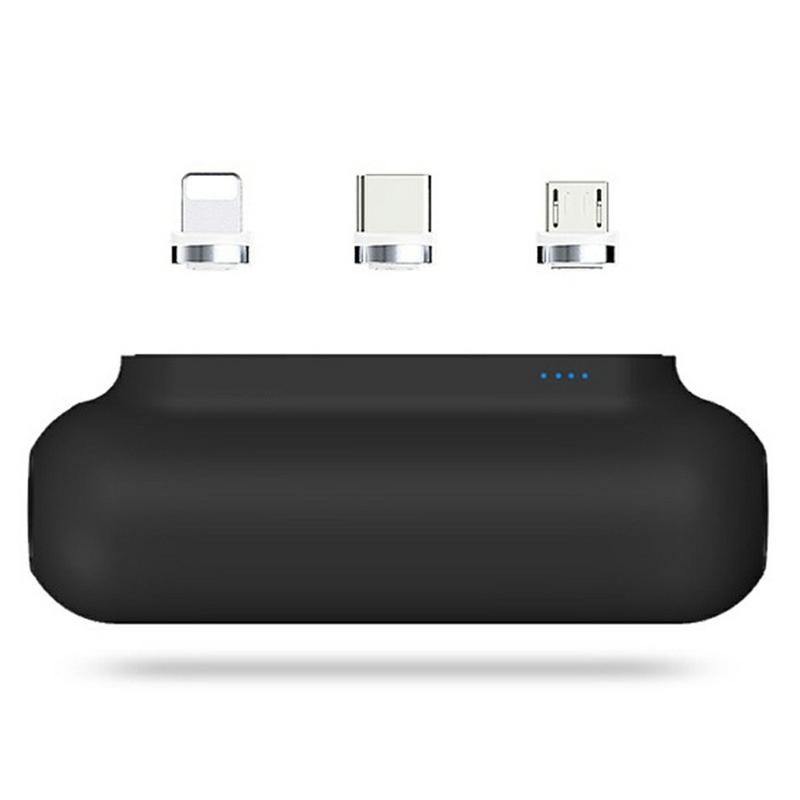 PUP-0373-V2 Mini Power Bank 3200mAh - Carregador portátil com conectores magnéticos Lightning + Micro-USB + USB-C, indicador LED de bateria