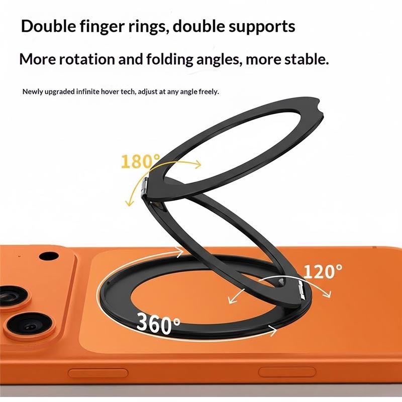 O suporte de anel magnético triplo ultrafino do Q11 é um suporte e uma pega de telemóvel elegante, concebido para uma utilização diária flexível sem aumentar o volume. Com uma estrutura tripla, dobra-se de forma compacta quando não está a ser utilizado, enquanto a rotação de 360° permite-lhe ajustar rapidamente entre a visualização na vertical e na horizontal. A base adesiva torna a instalação rápida e segura, e o íman incorporado aumenta a compatibilidade com suportes e acessórios magnéticos.