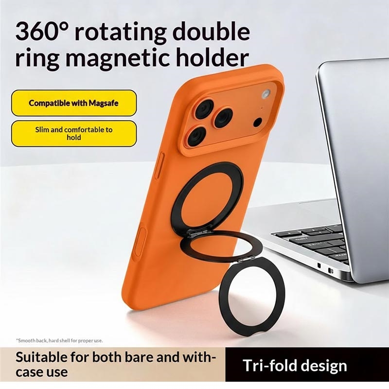 Q11 Suporte magnético triplo ultra-fino para anéis - Suporte adesivo para telemóvel com rotação de 360°, compatível com MagSafe