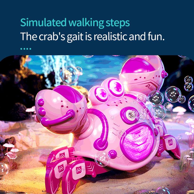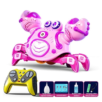 Q227 Robô-caranguejo mecânico com controlo remoto para crianças - Brinquedo RC de 2,4 GHz com bolhas e spray, luzes LED, música e rotação de 360°