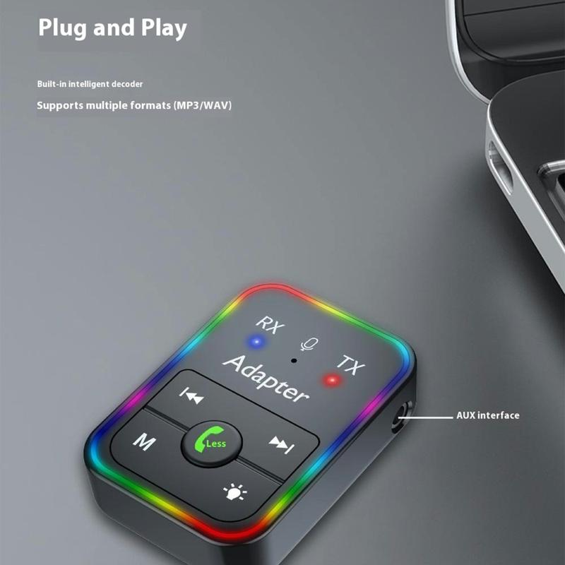 Q9 Transmissor e recetor sem fios Bluetooth 5.3 2 em 1 com leitor de MP3