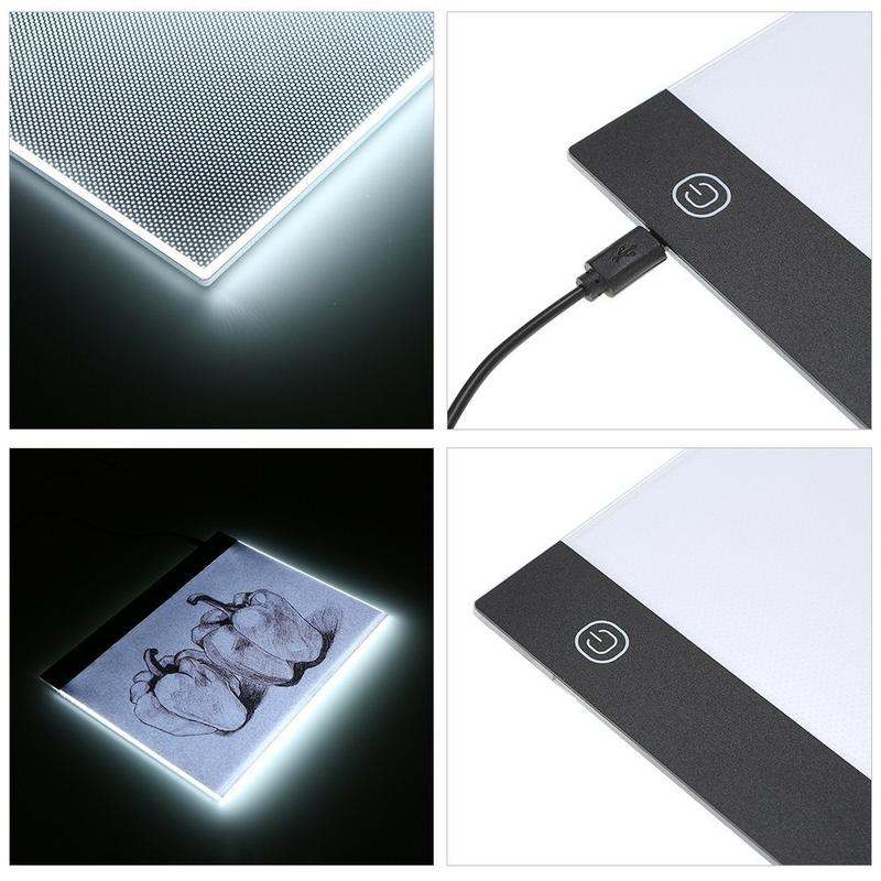 Quadro de desenho / Stencil em acrílico LED com 3 níveis de brilho ajustável - A4, 235x330mm