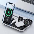 R11 Carregador sem fios multifuncional 4 em 1 Estação de carregamento portátil dobrável com ecrã digital, luz branca, função de hora