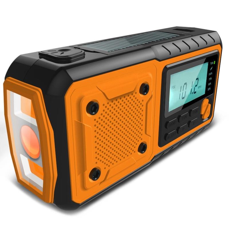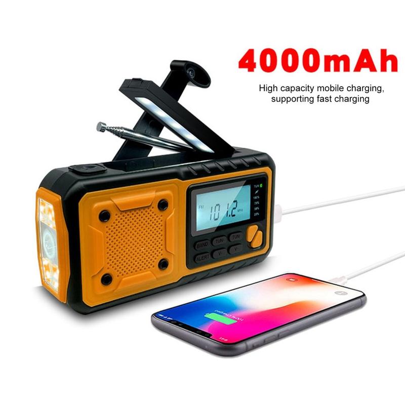 Rádio de emergência com manivela solar, banco de energia e lanterna