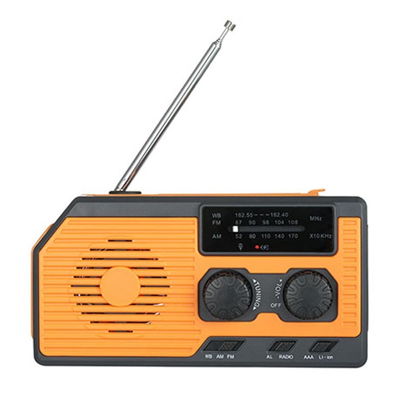 - Rádio de manivela solar multifuncional para situações de emergência
