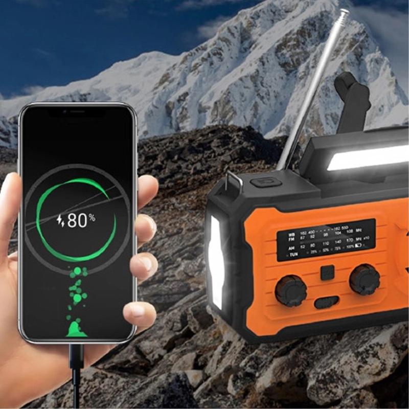 Esteja preparado durante falhas de energia, acampamentos e emergências ao ar livre com a lanterna com rádio de manivela de emergência YX328. Este dispositivo multifuncional de sobrevivência combina um carregador solar, gerador manual de manivela, rádio FM/AM/WB, lanterna LED e um banco de energia de 4000mAh em uma ferramenta compacta. Esteja você ao ar livre ou enfrentando um apagão, ele ajuda a manter-se informado, iluminado e conectado.