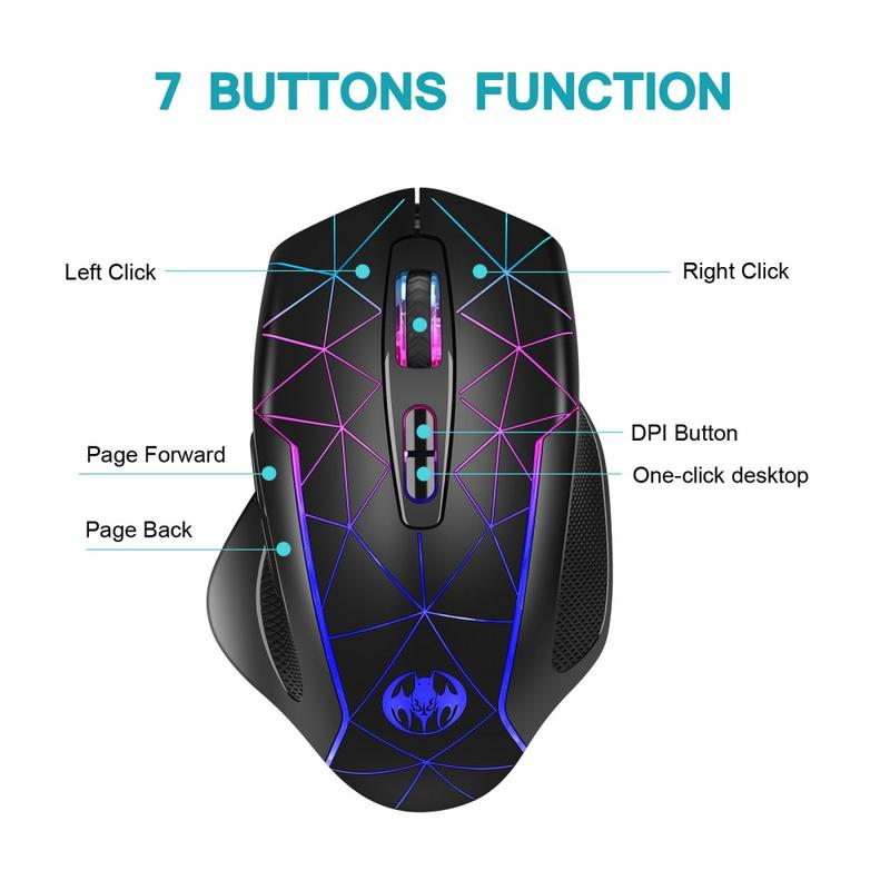Rato Gaming RGB Sem Fios 2.4 GHz Gotbat M30 - Recarregável 400 mAh, 1200-3200 DPI Rato Ergonómico Silencioso para PC e Mac