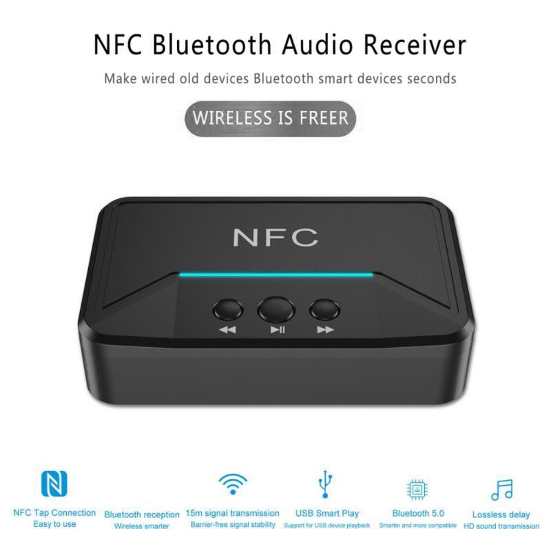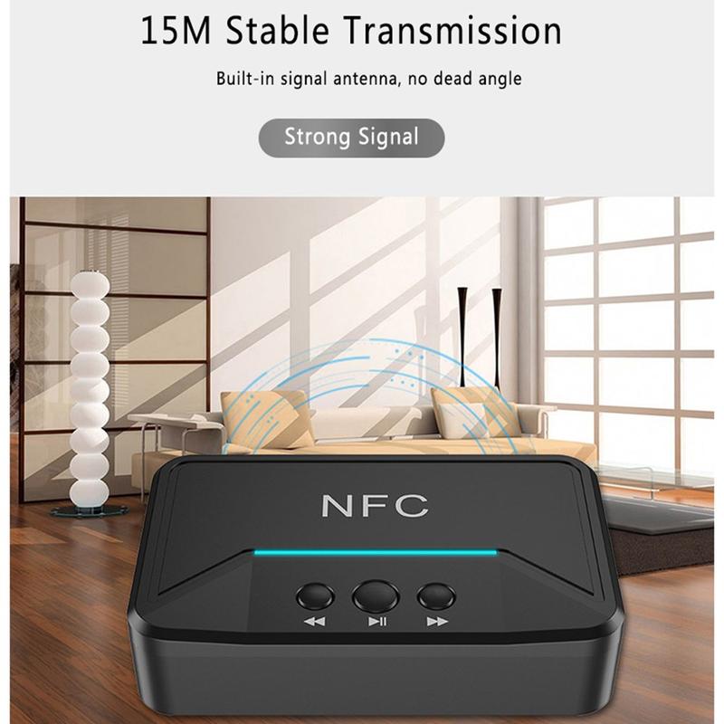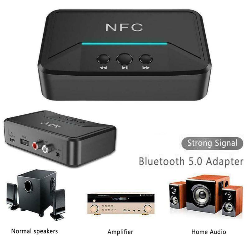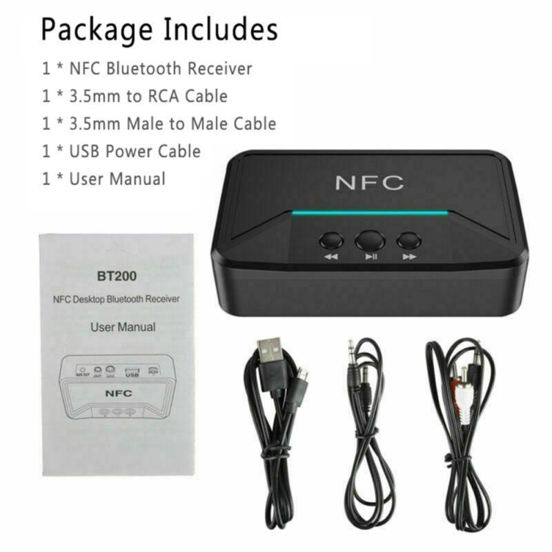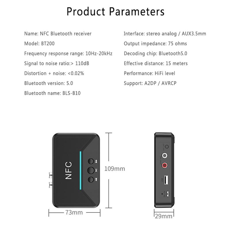 Recetor de áudio BT200 NFC Bluetooth 5.0 - Adaptador AUX 3.5mm e RCA com A2DP, alimentação USB, ligar/desligar automático para carro e estéreo doméstico (15 m de alcance)
