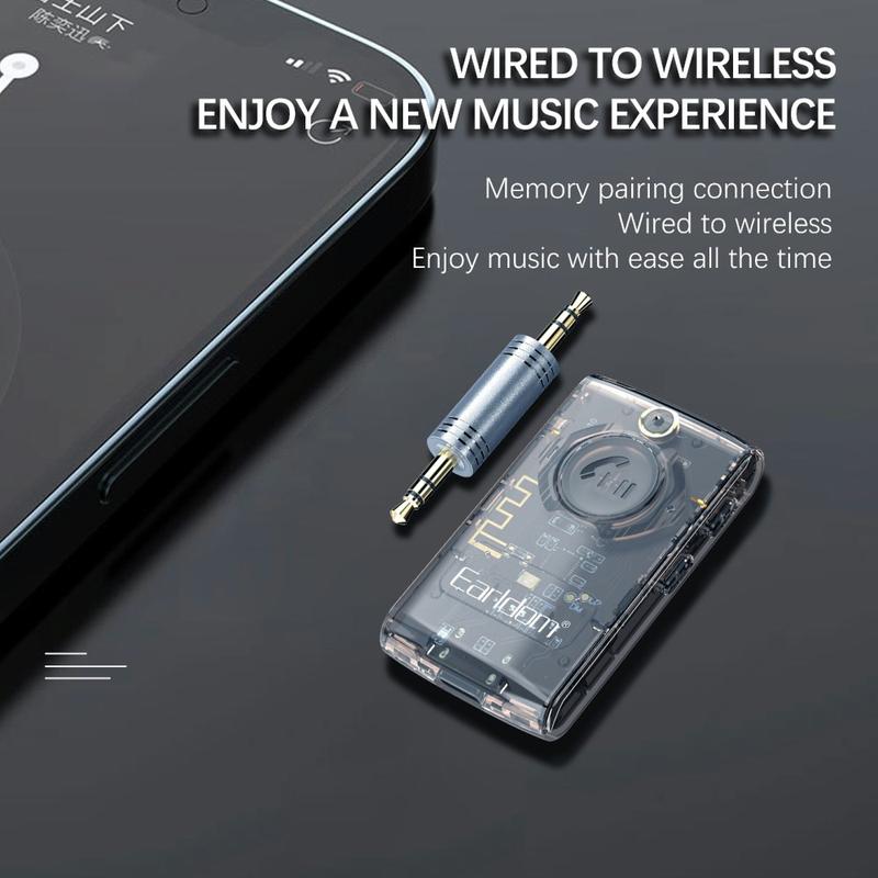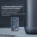 Pode ser ligado a telemóveis ou outros dispositivos Bluetooth e transferir música ou chamadas através da porta de saída AUX para automóveis, altifalantes, auscultadores, etc. sem função Bluetooth