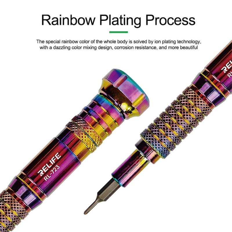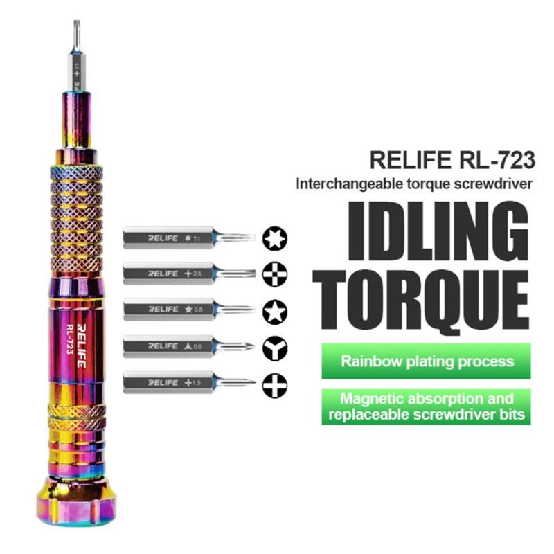 RELIFE RL-723 Chave de fendas 5 em 1 com 5 pontas Ferramentas de abertura para reparação e desmontagem de telemóveis e Tablets