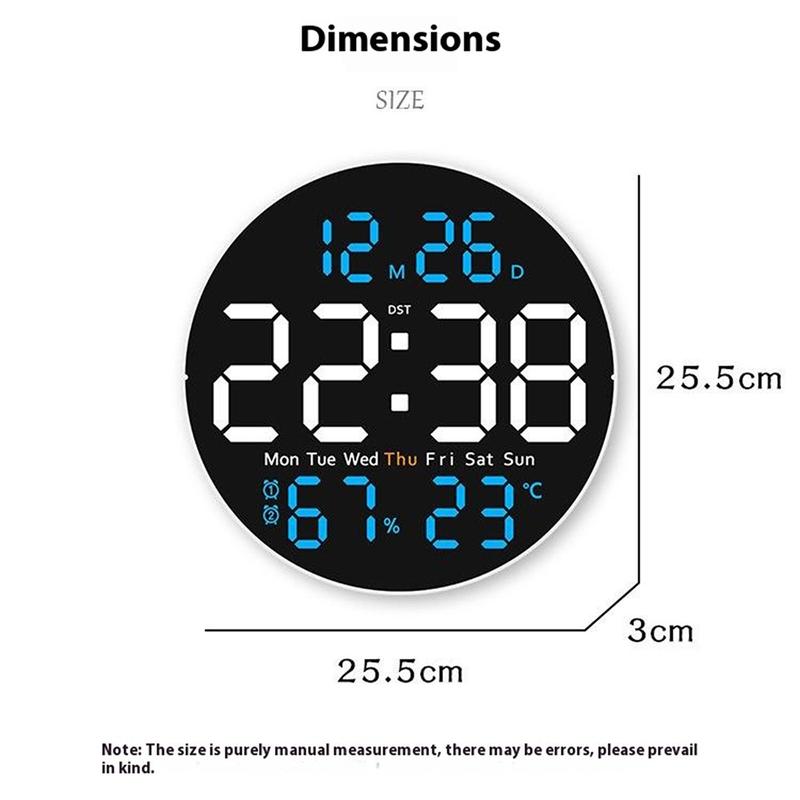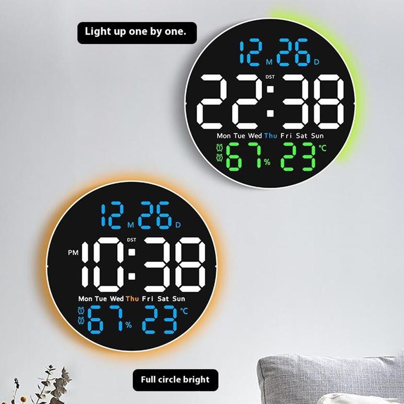 6672 Relógio de parede LED silencioso - Ecrã de temperatura e humidade de 25,5 cm com luz nocturna ambiente e controlo remoto