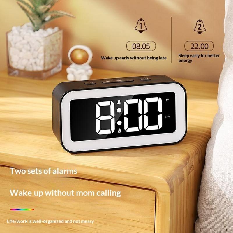 Relógio despertador digital LED RGB GS202-2 – Ecrã a cores dinâmico, luz noturna, alarme duplo e controlo duplo de brilho