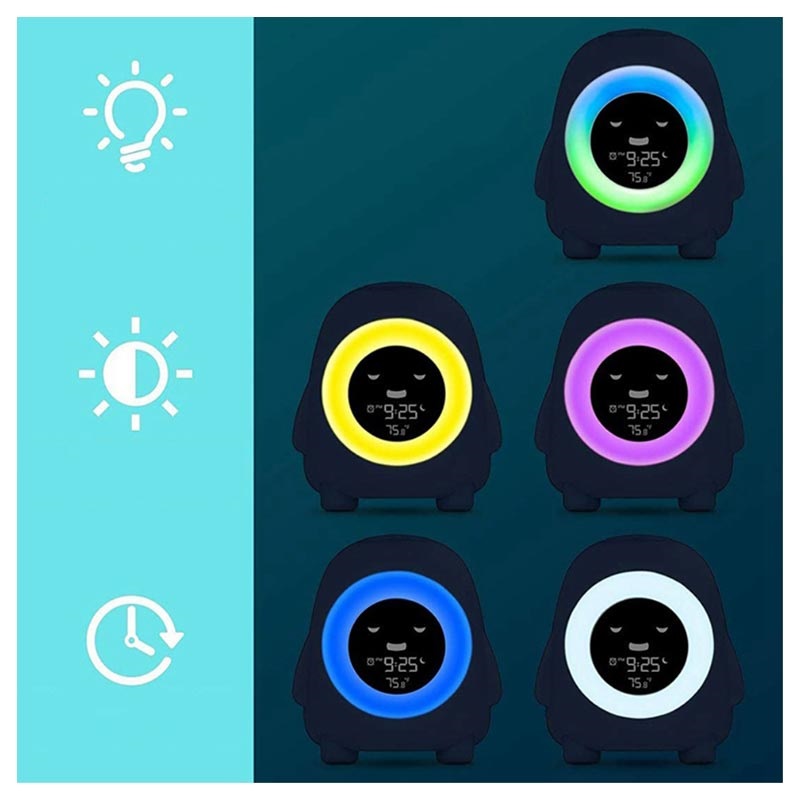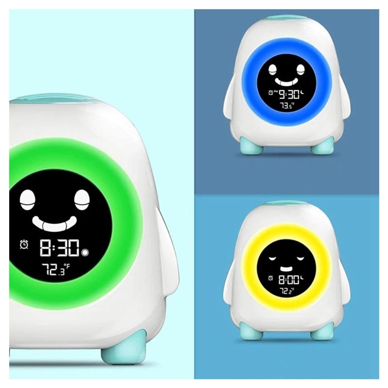 O despertador Smile para crianças tem três mudanças de expressão, cinco músicas de alarme, três níveis de volume, oito vezes NAP, cinco cores de luz diferentes, e um visor, que mostra a hora e a temperatura. Acorde os seus filhos a horas com um sorriso, usando o adorável despertador Smile.