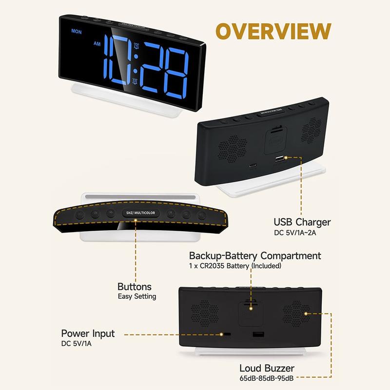 O relógio digital LED GS-G10 combina um design moderno, alarmes flexíveis, iluminação personalizável e uma função de memória fiável, tornando-o a escolha ideal para quartos, salas de estar, escritórios e mesas de cabeceira.