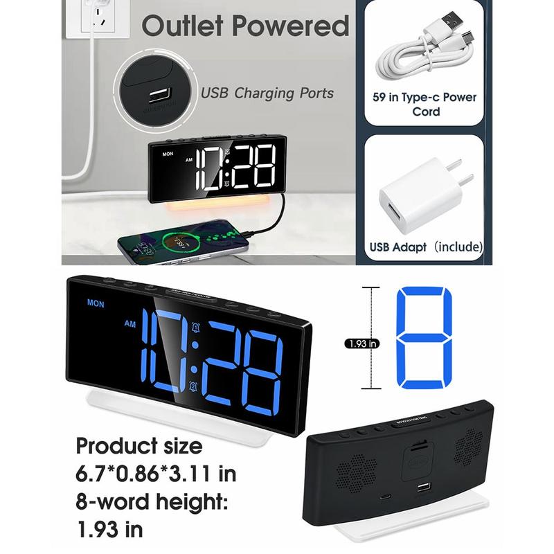 Relógio digital LED GS-G10 / despertador duplo com luz noturna, volume ajustável e função de memória