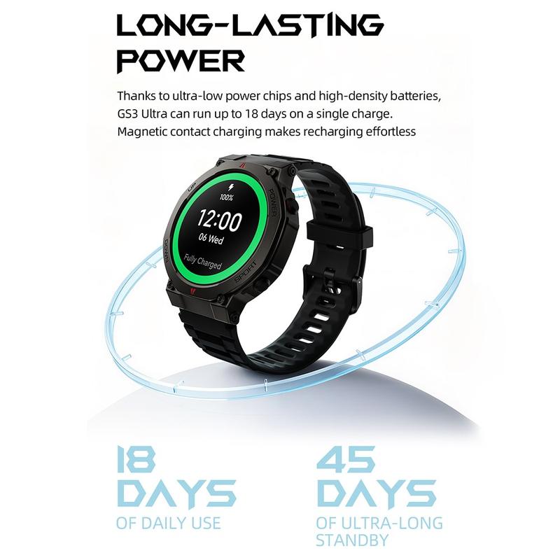 - Construção duradoura - Construído com uma estrutura em liga de zinco e vidro Corning Gorilla Glass, o GS3 Ultra é suficientemente resistente para o uso quotidiano e para treinos intensos.