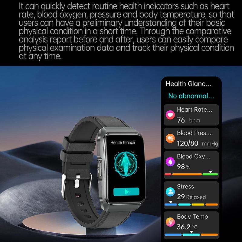 Melhore a sua rotina diária com o relógio inteligente ET650. Com uma elegante combinação de bracelete em pele e silicone, este versátil relógio oferece monitorização da temperatura corporal em tempo real, monitorização da saúde e convenientes chamadas Bluetooth - tudo num design elegante e duradouro. Mantenha-se ligado e informado onde quer que vá com um smartwatch feito para combinar na perfeição forma e função.