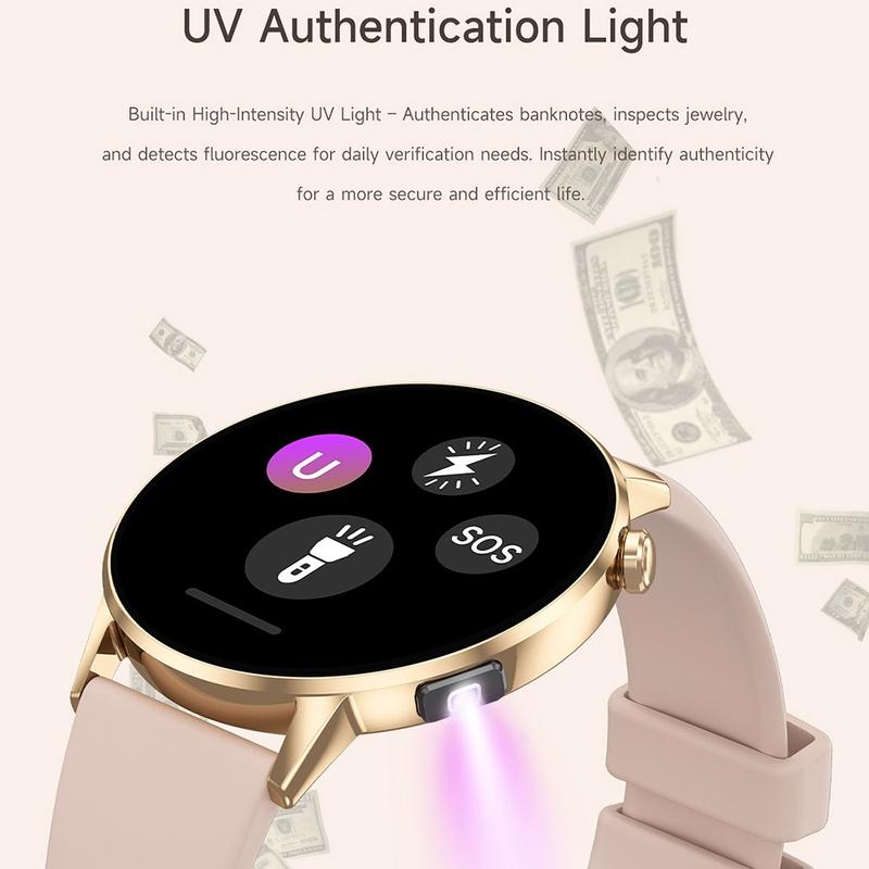 Mantenha o controle do seu bem-estar com sensores avançados e recursos alimentados por IA. O relógio fornece medição não invasiva de glicose no sangue, monitoramento da frequência cardíaca, rastreamento de oxigênio no sangue, análise da pressão arterial, informações sobre a VFC e rastreamento do sono. O acompanhamento da saúde das mulheres também é suportado, tornando-o um companheiro de saúde completo no seu pulso.